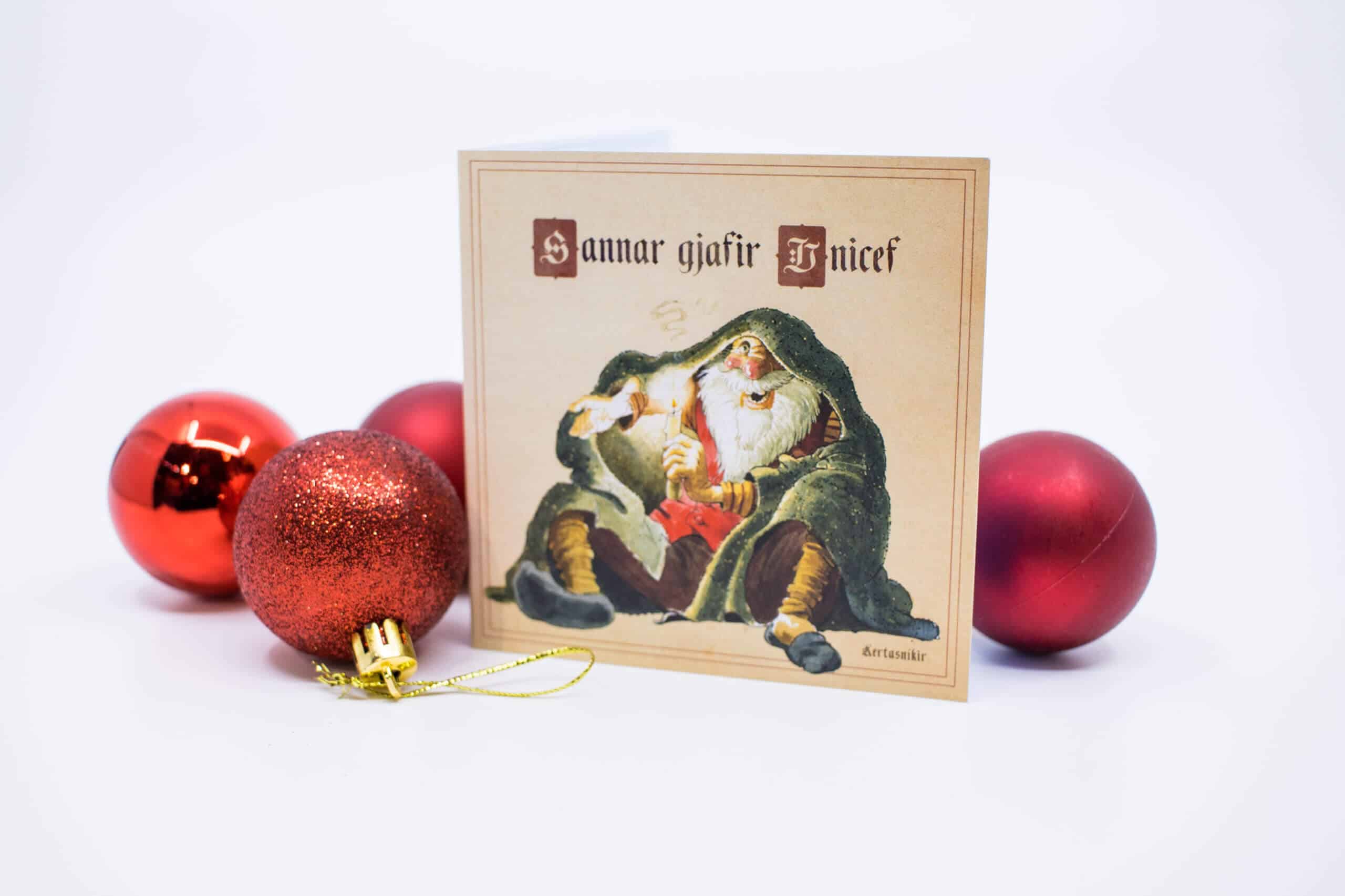 Hvert kort Kertasníkis inniheldur eitt hlýtt teppi sem UNICEF mun sjá til þess að berist til barns sem á þarf að halda.